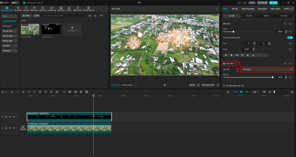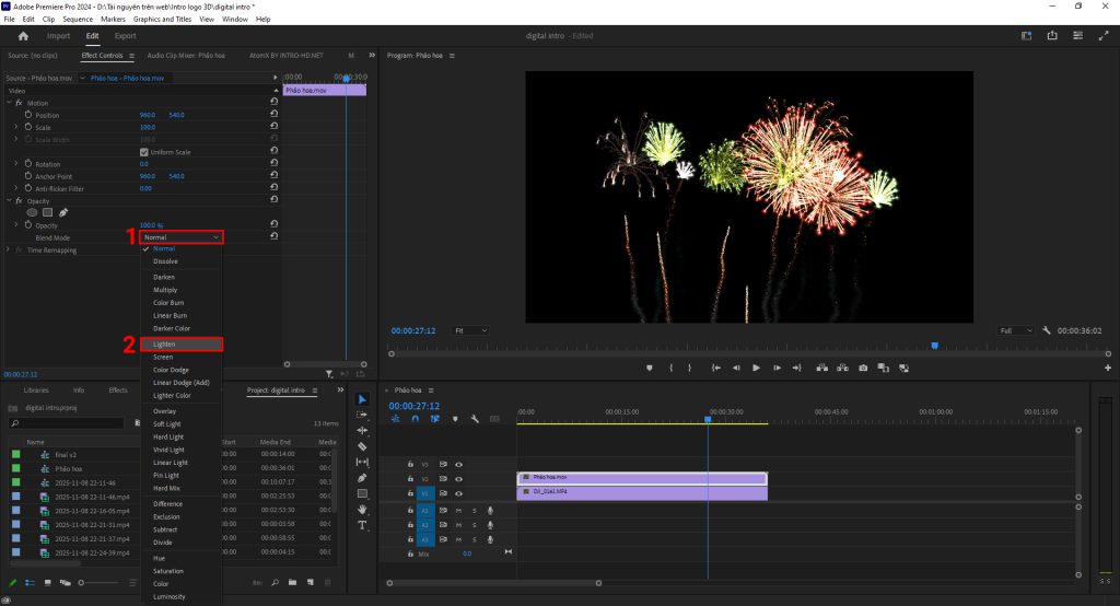 Video pháo hoa (nền đen). Với thời lượng 36 giây, đủ dài để làm các Project mà không cần phải ghép thêm.
